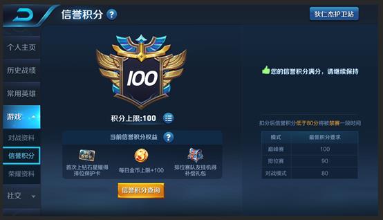 二、狄仁杰护卫站全新上线 新版本信誉积分界面中的【鹰眼护卫队】将全面升级为【狄仁杰护卫站】,在这里召唤师们可以一手获取最新的对局体验相关的所有公告,了解在“审判系统”“对局机制”等规则的调整,同时之前分散在各处的各种查询入口也被狄大人统一整合,不用再东奔西跑。