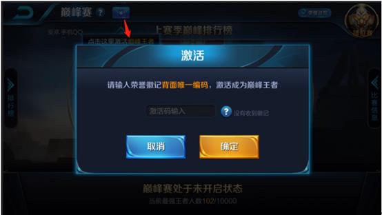 实物奖励领取后,可通过背面的唯一编码在巅峰赛主界面的激活流程中进行激活
