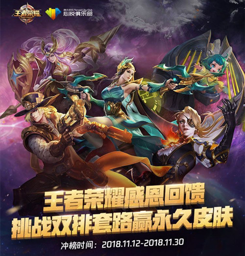 导读王者荣耀双排套路赢永久皮肤活动在哪参加?在心悦俱乐部中新开启了一个排位得永久皮肤的活动,下面小编就带来了王者荣耀双排套路赢永久皮肤活动介绍,想要了解的玩家们可不要错过了哦!王者荣耀双排套路赢永久皮肤活动活动时间:2018.11.12-20...