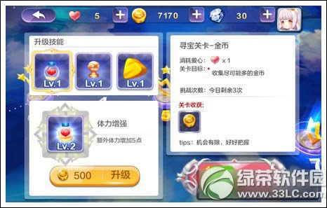 每天可以有三次机会进入金币寻宝关卡。
