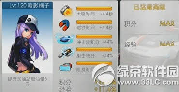满级属性:大喷时间增加4.4秒,磁铁时间增加4.4秒,冲击波积分增加44%,射击积分增加44%,隐身时间增加4.4秒,积分加成15%,经验加成11.4%。 满级:120级 开启条件:原价1888钻 技能:每45秒获得随机技能 --暗影橘子