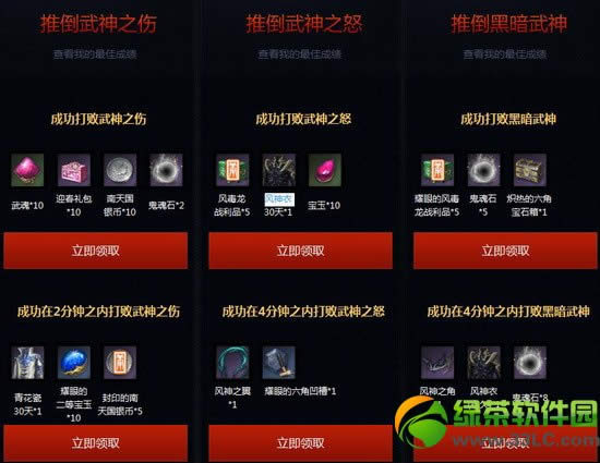 以玩家打败武神的三个分身的时间分别进行排名。用时越短,排名越高。若用时相同,先挑战成功者排名高。