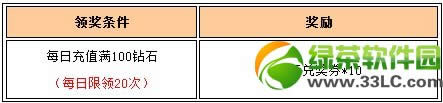 温馨提示: 1. 循环充值奖励每日最多只可领取20次; 2. 单笔充值奖励每笔充值只可领取一档奖励,且每档奖励每日可领取10次; 3. 每日累积充值奖励向下兼容,例如累积充值满100000钻石即可领取以上所有奖励,每档奖励每日可领取一次。