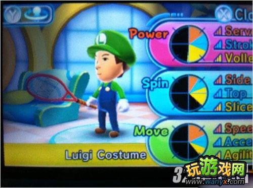 2. 路易吉套装 获得条件:获得星星杯(第8个杯赛)的双人赛冠军 心得:双人赛实在不行还可以靠队友。单人赛的上网大角度打法不太试用,但网前时遇到空档还是可以Y键抽球的,网后的话可以使用黄色吊球打对方空档。单人赛的星星杯的换场地效果技巧同样适用。