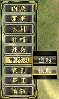 第二步,盟约之后,这里就是关键了,先邀请盟约好的势力出兵,同时去盟约另外一家。 因为已经盟约了,脑袋上多了”ぉ抱ぇ“字样,所以可以出兵到与你接壤的所有城市