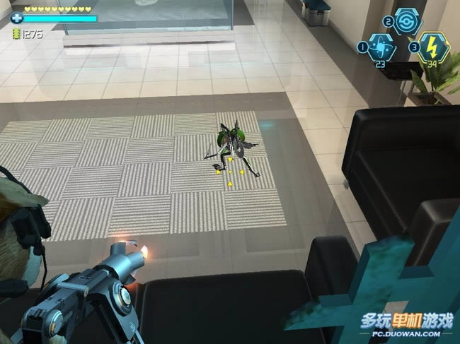 如图,把他引过来,站在通风口,躲起来他就会慢慢往回走,之后一点点打他后背,几颗子弹就完了。