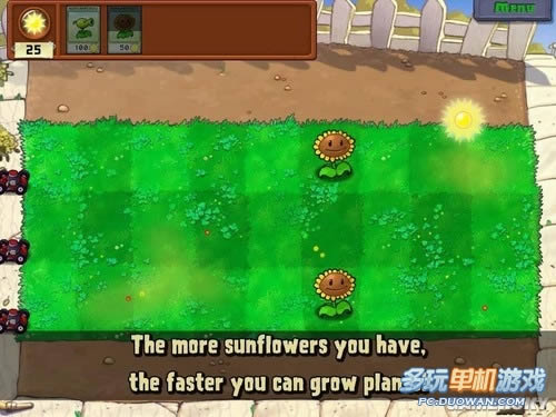 评测: 游戏很简单 收集阳光,然后栽种植物。攻击+防御+制造阳光的植物要合理安排就可以抵御僵尸。不需要键盘,纯鼠标操作 蛮好玩的游戏