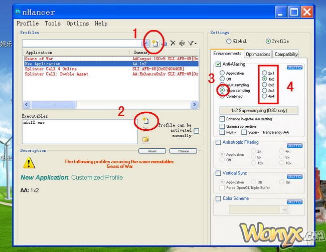 按照圈圈的顺序,按那些按钮,框框那里是给你选择的,你按你的实际机能来分辨率来选择SUPER AA