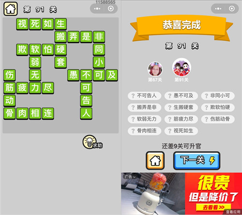 《成语升官记》秀才第91关答案