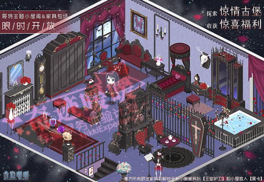 活动期间,哥特主题小屋阁&家具专场将会限时开放!集齐所有惊情古堡主题家具,即可解锁小暖暖王室护卫以及小屋客人黑卡哦!