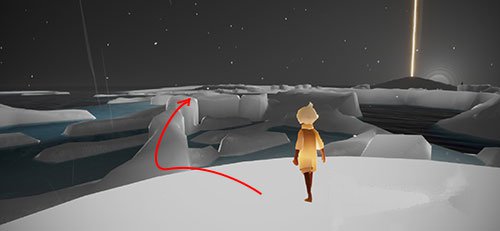3、下面 玩家的附近是看不到可以激活的石头的,然后就直接来到左边的冰川上如下图: