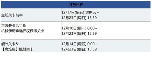 本次主线关卡将按照以下日程分为前半,后半进行开放。由于一开始关卡为开放完整的缘故,导致部分任务无法完成,玩家无法第一时间拿到全部5张活动礼装。