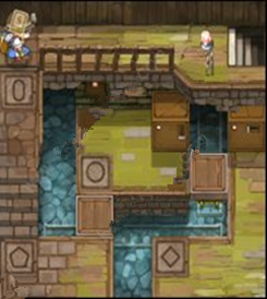 首先点亮开关,下拉左箱操纵杆,可以看到一个轨道板降了下来。此时关闭开关,将左箱操纵杆复位,然后再次点亮开关,下拉操纵杆,轨道板再次下降。重复操作,让轨道板形成一个通向右岸的浮桥。