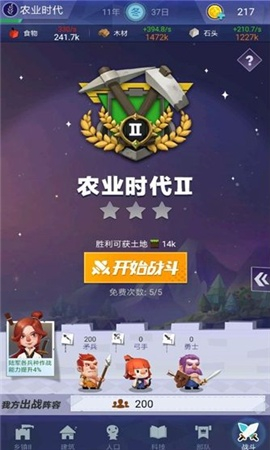 在飞速发展的初期,土地的扩张速度很难跟上我们的需求,要想拥有更多的空闲土地,在战斗玩法开启后请第一时间前去战斗,毕竟免费战斗次数达到上限后将停止增长,疏于战斗将会让你的发展比别人慢上一拍。