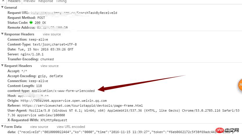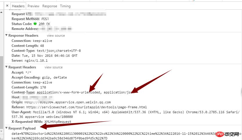 其中header 中的Content-Type,应该用小写content-type才能让服务器收到参数。让我折腾的好久,改了服务器仍然不行,原来是这个问题。参数在request payload中,服务器不能收到,使用如下转换之后
