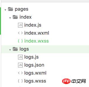 所有的页面都在 pages 文件夹中。 我们这个示例工程中有两个页面 index 和 logs。 还记得我们前面在 app.json 看到的页面配置吗: