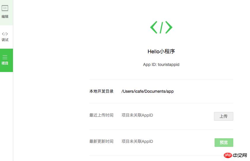 由于我的环境没有内测账号,所以在上传区域显示的是 项目未关联 AppID , 如果有了测试账号,就会显示你的 AppID 了。 目前只有内测账号才能够上传小程序。这就是唯一的差别了。没有内测账号只是不能上传,但完全可以在本地开发和测试。