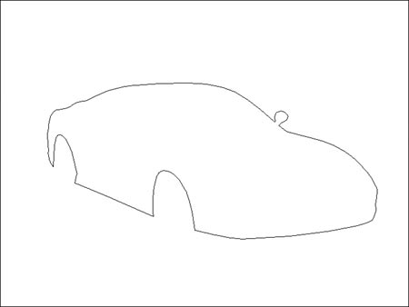 51.新建700X500,72DPI,白色背景文件一个,在背景层上新建一个层,用钢笔工具将汽车的轮廓画出,轮子可以先不画。(图1)