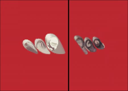 图2721.暗调部分完成了,现在该做钢圈的高光了,在刚才的层上再新建一个层,将前景色设置为白色,其余做法跟画暗调部分一样,我就不说了,完成如(图28)(图29)(图30)