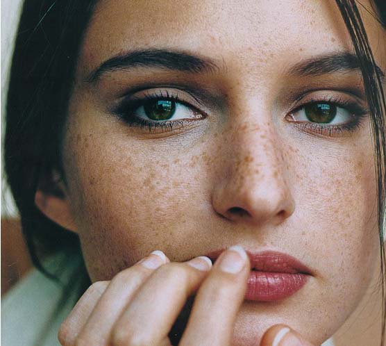 对于去除数字图像中的脸部斑点,传统的做法是图章工具和修复画笔。对于大面积的斑点,通常采用局部模糊的方法。但是模糊带来的只是塑料质感的皮肤,感觉更像色情杂志上的女模特照片。无意中通过自己的实践找到了一种不错的方法,这里和大家一起分享一下。原图: