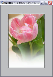 现在观察这个图像,你可能感觉郁金香也被渐变效果挡住了,我希望整张图片向上移动一些,但又希望保持现在的渐变效果不改变,层遮照就可以让你做到这一点。