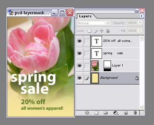 “我需要在公司的网站上放一个春季销售的广告”,你的老板给你指派工作,“你能在1个小时内做好吗?”。“一个小时?我只需要5分钟。”你回答道。现在你需要的就是利用层遮照功能来提高你的工作效率。Photoshop中一个很重要的功能就是层遮照,使用它可以产生图像的渐变效果。在本文中我们将向你介绍如何使用层遮照,并且你还可以掌握Photoshop的如下功能: