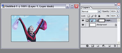 一个小技巧:你可以用任意的颜色来填充背景层,由于层遮照会使图像的一部分变透明,所以背景颜色也会显示出来,这样图像看起来会更生动。