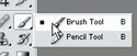 在工具箱中选择毛笔工具,或者按快捷键B来选择。