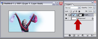 点击一下层遮照,然后在图像中间到底部拉出一个垂直的渐变,你可以按着Shift键以保证渐变式垂直的。