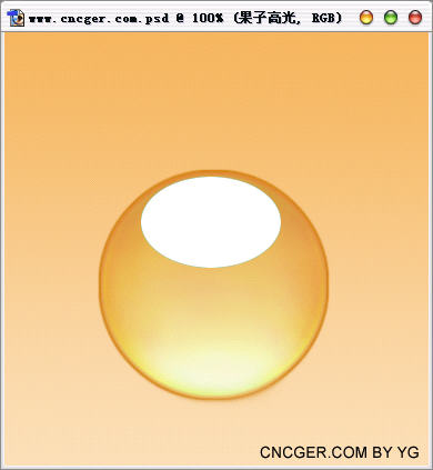 第四步:新建一层,用椭圆选取工具在果子的上方画一椭圆,填充白色,然后点图层控制作面版下面的“添加图层蒙版”按键为此图添加蒙版,再按X键复位前景颜色,用渐变工具在蒙版上进行线性渐变。此步用以表现果子晶莹效果的高光!