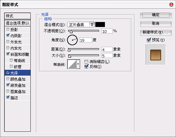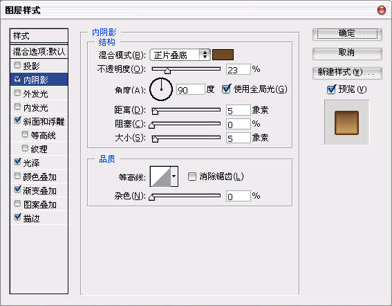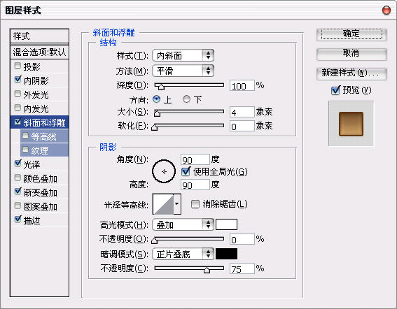之后我们可以利用图层样式来做把子。具体参数参考如下: