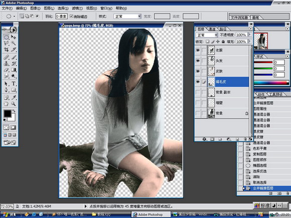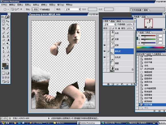 开始各个部位逐步填色,主要用到色彩调整里面的工具,最好不要变亮度/对比度,因为原本就是一张图片