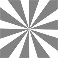 2. 执行“滤镜→扭曲→极坐标”命令,在“极坐标”对话框中选择“平面坐标到极坐标”单选项,此时红色条纹以图像中心点呈放射状分布,效果如图2所示。