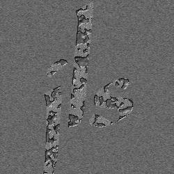 记得高中时的化学课吗?酸和金属的反应,酸可以腐蚀金属,我们可以利用这一点在金属上刻出字体。当然使用酸是一件非常危险的事情,那么何不再次使用Photoshop来试试呢?下面我要介绍的就是这样一篇教程,最后的效果非常真实,而且你可以随意改变颜色和腐蚀程度。不信?往下看吧。1、建立新文件,大小为250X250px,设置背景色为白色,使用文字工具打上字体,然后选择菜单Layer>Type>Render Layer,命名该层为“Not Etched”。
