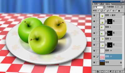 碟子的制作和苹果一样(只用渐变),大家有兴趣的作完后传上来。