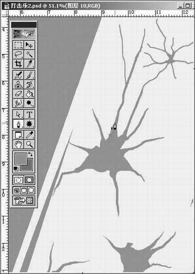 4. 使用钢笔工具绘制如图3所示的酒瓶被击破后的裂痕形状,然后填充背景色即可。或者使用自定义轮廓工具绘制出轮廓后,使用节点选择工具进行轮廓修改也可实现裂痕的绘制。