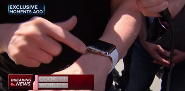 假设红色的数码表冠是 LTE 天线,那么库克有可能一早就测试过这款设备了(下图),最早可以追溯到初代 Apple Watch 推出时。