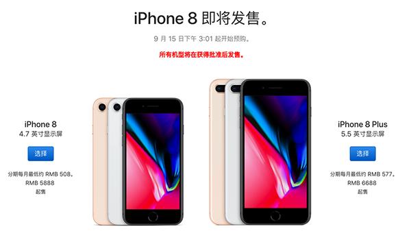iPhone 8价格从5888元起售,iPhone 8 Plus价格从6688元起售。