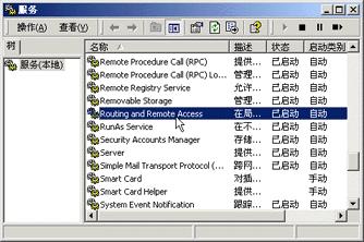 and Remote Access"(路由和远程访问)项"自动"处于"已启动"状态了!
