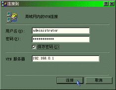 网络"中双击刚才建立好的"局域网内的VPN连接"图标,再输入相应的用户名(需具有拨入服务器的权限)和密码,再按"连接"按钮。