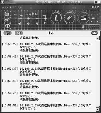 电脑教育报》今年第40期《局域网发现病毒一法》中提到,可以利用天网防火墙发现局域网内感染“冲击波杀手”的机器。近日经实践发现,利用天网同样可以知道哪台计算机中了“尼姆达病毒”。下面就以两个典型的天网日志为例,加以分析,供大家参考。范例一天网日志如下:[11:58:08] 10.100.2.68试图连接本机的NetBios-SSN[139]端口,TCP标志:S,该操作被拒绝。[11:58:11] 10.100.2.68试图连接本机的NetBios-SSN[139]端口,TCP标志:S,该操作被拒绝。[11:58:17] 10.100.2.68试图连接本机的NetBios-SSN[139]端口,TCP标志:S,该操作被拒绝。[11:58:18] 10.100.2.74试图连接本机的NetBios-SSN[139]端口,TCP标志:S,该操作被拒绝。特征:某一IP连续多次连接本机的NetBios-SSN[139]端口,表现为时间间隔短,连接频繁。日志解读:日志中所列计算机感染了“尼姆达病毒”。感染了“尼姆达病毒”的计算机有一个特点,它们会搜寻局域网内一切可用的共享资源,并会将病毒复制到取得完全控制权限的共享文件夹内,以达到病毒传播之目的。范例二天网日志如下:[14:00:24] 10.100.2.246 尝试用Ping来探测本机,该操作被拒绝。[14:01:09] 10.100.10.72 尝试用Ping来探测本机,该操作被拒绝。[14:01:20] 10.100.2.101 尝试用Ping 来探测本机,该操作被拒绝。特征:多台不同IP的计算机试图利用Ping的方式来探测本机。日志解读:日志中所列机器感染了冲击波类病毒。感染了“冲击波杀手”的机器会通过Ping网内其他机器的方式来寻找RPC漏洞,一旦发现,即把病毒传播到这些机器上。安装建议:天网防火墙最好安装在普通机器上,并且IP是不公开的。尤其注意不要安装在服务器上,因为服务器是大家经常要访问的,日志中所出现的情况很可能是人为造成的,所以可能会大大影响我们判断的准确性。
