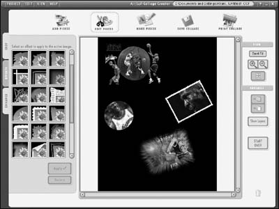 在“Clip Art”标签下软件为我们准备了七大类丰富多彩的剪贴画,合理地使用它们可以给我们的拼贴画锦上添花。