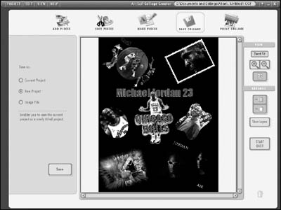 使用工具栏里的“Save Collage”按钮,进入保存界面(如图4)。选择“Current Project(当前方案)”或“New Project(新方案)”项,都可以把拼贴画作为一个方案保存起来,日后如需修改调用此文件即可;选择“Image File”项可把拼贴画以图片的形式输出出来。点击工具栏里的“Print Collage”,在界面里进行打印前的设置,由于比较简单,笔者在这里就不具体介绍了。