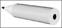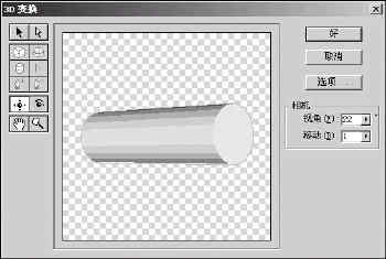 1. 启动Photoshop CS,新建一个白色画布,再新建一个图层,执行“滤镜→渲染→3D变换”命令,打开“3D变换”对话框,在对话框左侧选择“圆柱”工具在预览窗口中拖动,绘制一个圆柱,然后使用轨迹球工具旋转模型,使模型产生立体效果作为笔杆,如图1所示。