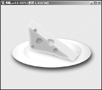 4. 在奶酪的下面再建一个图层,使用“画笔”工具在该图层上绘制淡淡的阴影,然后再新建一个图层,使用“椭圆选框”工具绘制一个较大的椭圆,应用径向简便填充绘制盘子,并为盘子添加“投影”图层样式,完成后效果如图3所示。