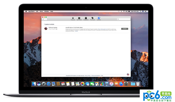 注册完成后,Mac App Store 将会启动并显示“更新”面板。您可以点按“更新”按钮以安装最新的 macOS Public Beta 版。如果没有可用的 macOS Public Beta 版,您将会在其发布时收到来自 Mac App Store 的通知。