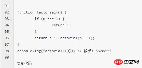 下面代码是一个阶乘函数,计算n的阶乘,最多需要保存n个调用记录,复杂度 O(n)