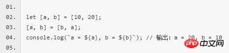 如果将一对变量放入一个数组,然后将数组解构赋值相同的变量(顺序不同),就可以不依赖中间变量交换两个变量的值。