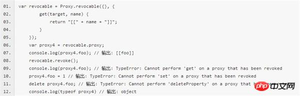 Proxy.revocable方法用来创建一个可撤销的代理对象,一旦某个代理对象被撤销,它将变的几乎完全不可用,在它身上执行任何的可代理操作都会抛出 TypeError 异常。