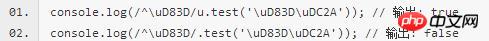 上面的代码中,\uD83D\uDC2A是一个四字节的UTF-16编码,代表一个字符。不加“u”,会按 ES5 将其识别为2个字符,加了“u”之后,会按 ES6 将其正确识别为一个字符。